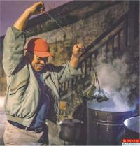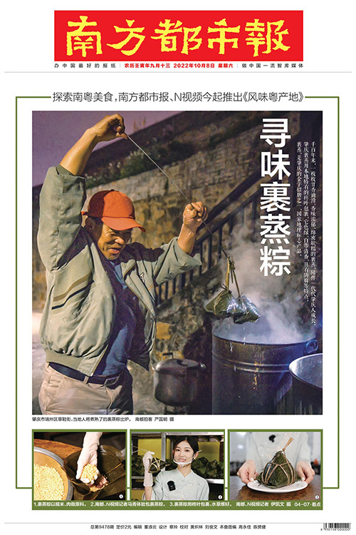 肇庆市端州区草鞋街,当地人将煮熟了的裹蒸粽出炉。 南都拍客 严国明 摄 裹蒸粽以糯米、肉做原料。 南都、N视频记者马青体验包裹蒸粽。