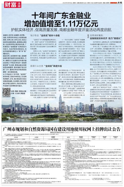 十年间广东金融业增加值增至1.11万亿元