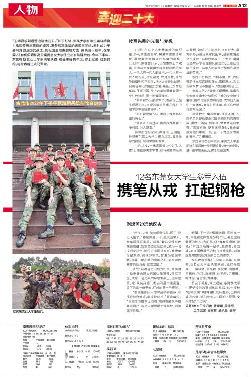 “主动要求到艰苦边远地区去。”卸下红装,汕头大学在读生黄晓晴换上承载梦想与期待的戎装,准备续写先辈的光荣与梦想,向往成为英姿飒爽的卫国女战士。到祖国最需要的地方去,黄晓晴不孤单。在东莞,还有何佩颖