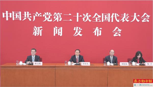 10月15日,中国共产党第二十次全国代表大会新闻发言人孙业礼在北京人民大会堂举行新闻发布会。 新华社发