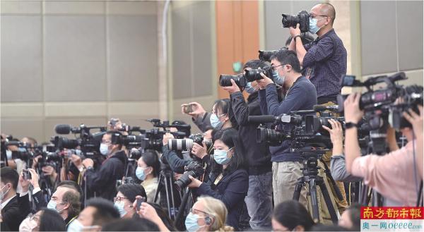 10月15日,党的二十大新闻发言人孙业礼在北京人民大会堂举行新闻发布会。记者在分会场摄影。 新华社发