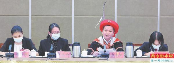 10月17日,广东代表团分组讨论报告,党的二十大代表,连南瑶族自治县田家炳民族中学校长、党总支书记盘金生讲述民族地区的变化。 南方日报特派记者 王辉 肖雄 摄