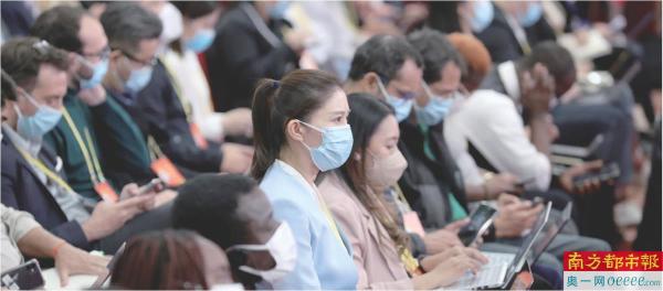 130余家媒体的记者参加了记者招待会。这是记者在分会场。 新华社发