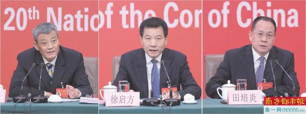 中央纪委副书记、国家监委副主任肖培,中央组织部副部长徐启方,中央政策研究室副主任田培炎介绍有关情况,并回答记者提问(拼版照片)。 新华社发
