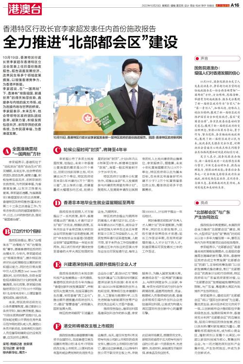 10月19日,香港特区行政长官李家超在香港特区立法会发表上任后首份施政报告。