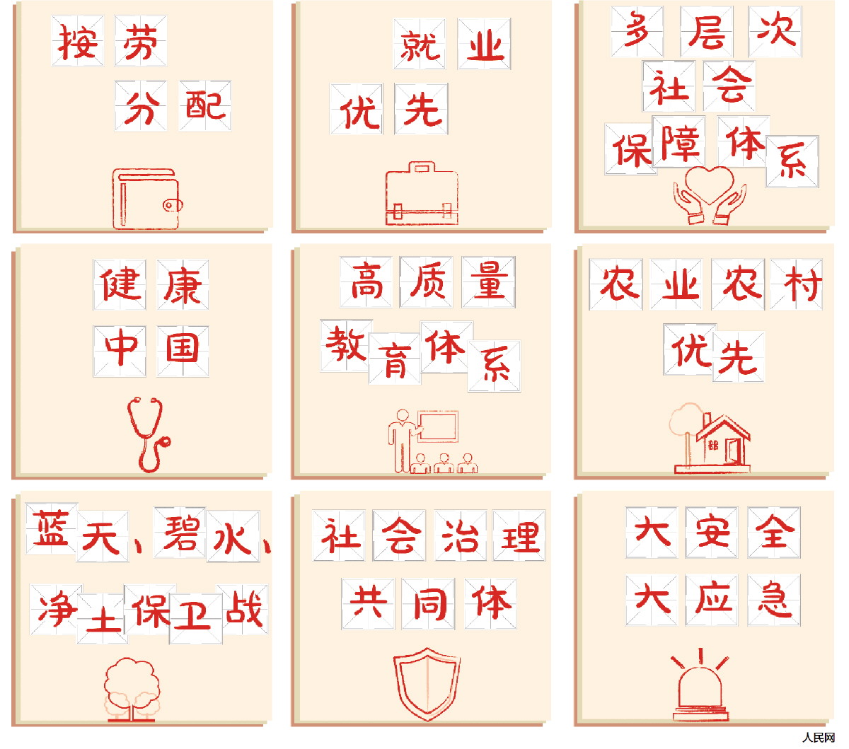 完善分配制度,实施就业优先战略,健全社会保障体系,推进健康中国建设……