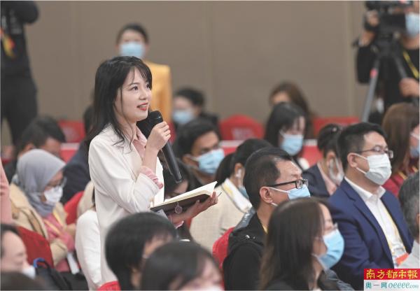 10月21日,党的二十大新闻中心第五场招待会上,记者在分会场提问。 新华社发