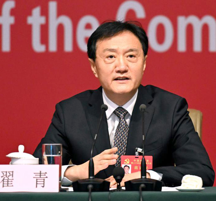 10月21日上午,党的二十大新闻中心举办第五场记者招待会。生态环境部党组成员、副部长翟青与记者交流。 新华社发