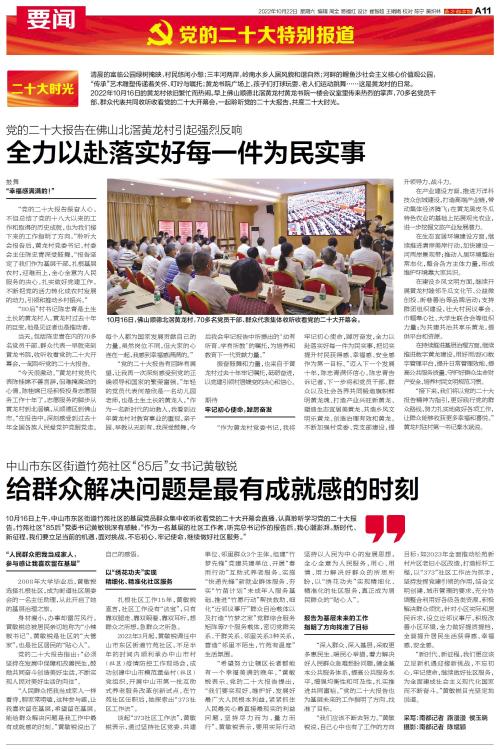 10月16日上午,中山市东区街道竹苑社区的基层党员群众集中收听收看党的二十大开幕会直播,认真聆听学习党的二十大报告。