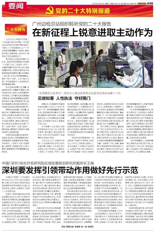 中国共产党第二十次全国代表大会16日上午在人民大会堂开幕。中国(深圳)综合开发研究院区域发展规划研究所副所长王振,也早早在线上等待,认真聆听了党的二十大报告内容。