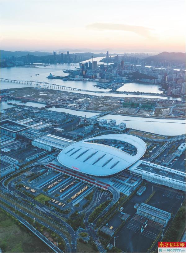 黄昏的港珠澳大桥珠海口岸。 南都拍客 梁琪琳 摄