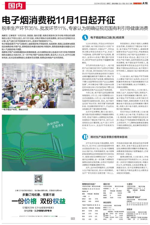 10月25日,财政部、海关总署、税务总局发布《关于对电子烟征收消费税的公告》。