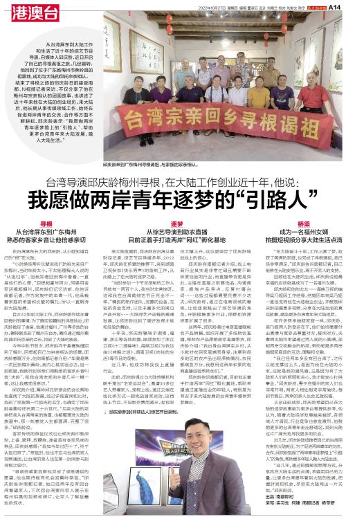 从台湾屏东到大陆工作和生活了近十年的综艺节目导演、自媒体人邱庆龄,近日开启了自己的寻根谒祖之旅。