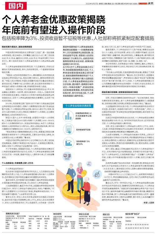 个人养老金优惠政策揭晓 年底前有望进入操作阶段