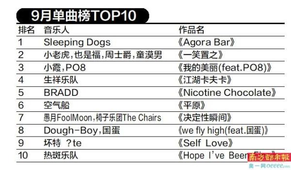 9月单曲榜TOP10