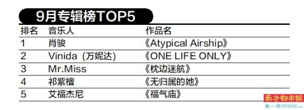 9月专辑榜TOP5