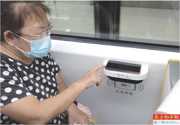 一名乘客在体验无线充电。