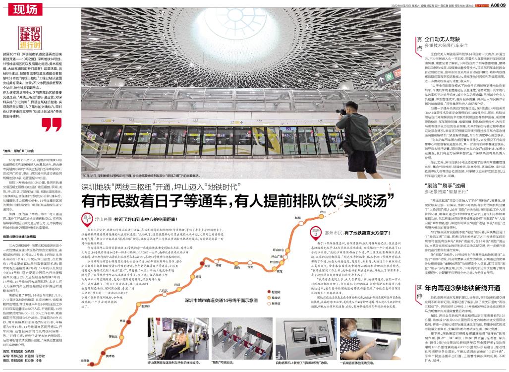 10月28日10时58分,随着深圳地铁14号线首班载客列车缓缓驶入岗厦北站台,标志着市民翘首以盼的“两线三枢纽”拉开神秘面纱。