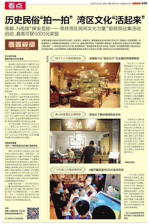 南都、N视频“探宝觅踪——寻找湾区民间文化力量”短视频征集活动启动。