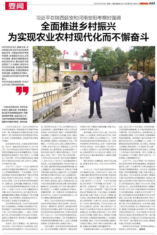 10月26日至28日,中共中央总书记、国家主席、中央军委主席习近平在陕西省延安市、河南省安阳市考察。