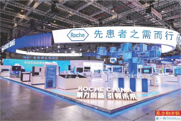 2018年,首届中国国际进口博览会上,罗氏将一款治疗ALK阳性非小细胞肺癌创新药带到了中国,得益于进博会这一开放、交流平台和国家的快速审评审批渠道,这一新药在美国获批9个月后就登陆中国市场,让中国患者获益;此后,罗氏将进博会视作一年一度最重要的新产品、新技术展示平台,并在抗肿瘤、免疫、罕见病以及抗流感等多条管线上进行展示。借着进博会的东风,罗氏多款参展展品快速进入中国市场,基本实现与欧美同步获批。今年,作为最早表示支持并参加进博会的外资500强企业,罗氏将连续第五年参会并在1000平方米展台,展示近30款已上市和即将上市的全产品矩阵、全球首发产品及创新解决方案,除多款已在中国上市的重磅产品,还将带来近10款即将在华上市的全球创新产品,覆盖血液、乳腺癌、眼科及神经科学等多条管线。