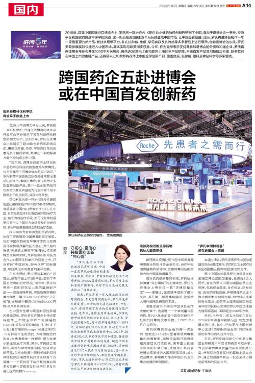 2018年,首届中国国际进口博览会上,罗氏将一款治疗ALK阳性非小细胞肺癌创新药带到了中国,得益于进博会这一开放、交流平台和国家的快速审评审批渠道,这一新药在美国获批9个月后就登陆中国市场,让中国
