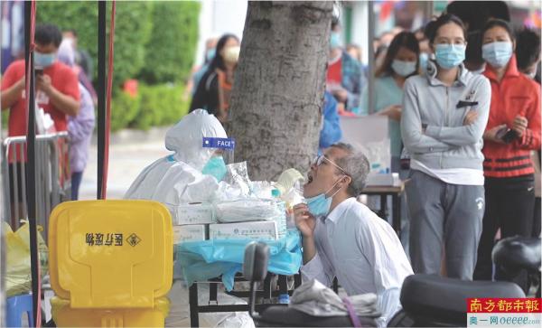 广州市海珠区客村片区,居民在做核酸。南都记者 吴泽嘉 实习生 吴博斌 摄
