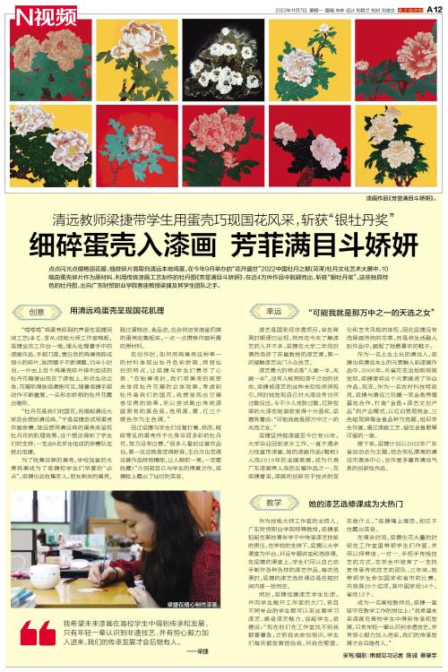 点点闪光点缀艳丽花瓣,细微碎片竟取自清远本地鸡蛋。
