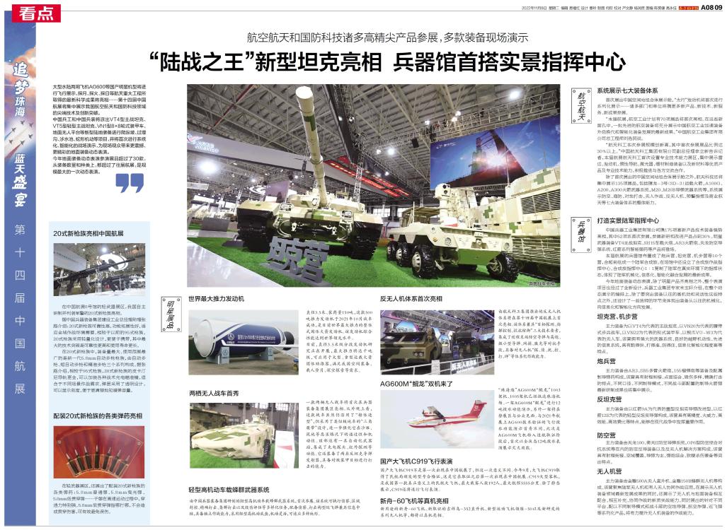 大型水陆两用飞机AG600等国产明星机型将进行飞行展示,探月、探火、探日等航天重大工程所取得的最新科学成果将亮相……第十四届中国航展将集中展示我国航空航天和国防科技领域的尖端技术及创新突破。