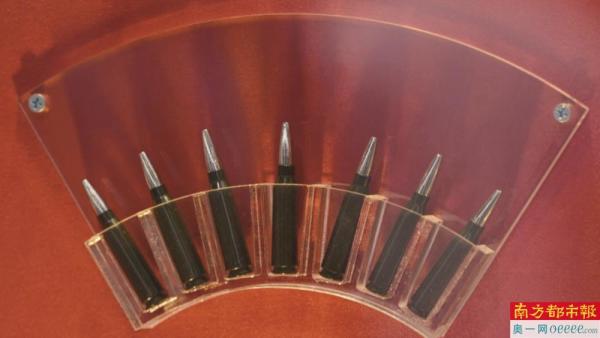 在轻武器展区,还展出了配装20式新枪族的各类弹药:5.8mm普通弹、5.8mm曳光弹、5.8mm低贯穿弹……子弹在高速运动过程中,穿透力特别强。5.8mm低贯穿弹指哪打哪,不会造成贯穿伤害,可有效避免误伤。