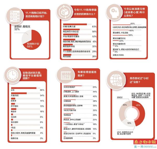 双十一已进入第十四个年头,每个人的生活都或多或少与其有所关联。这也是疫情下的第三个双十一,面对诸多不确定因素,网友们甚至开始畅想十年后的双十一会是什么样。疫情发生以来,各年龄段的消费人群对线上依赖性都逐年增强,且每年呈现出不同消费趋势。今年上半年,部分地区物流受阻、供应链中断下,人们进入囤货模式。今年下半年,南方都市报再次发起网购消费民调,发布《2022双十一消费新趋势洞察报告》(以下简称“报告”)。报告显示,今年双十一人们更倾向于理性购物模式,网购时最看重优惠力度和实用价值;价格差异不大时,人们倾向于综合考量物流、服务等内容。其中,价格保护既是网友需求度高也是最愿意尝试的增值服务,跨品类、多件以旧换新等新服务人气走高;曾经的供应链阻隔让人们调低预期,期望的收货时间由次日达变隔日达;消费者对即时零售认知度提升,近七成受访者使用过一小时达,并希望商家、平台增加优惠活动。