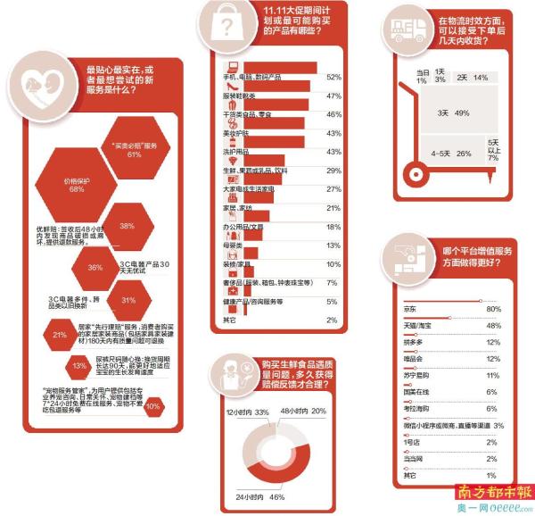 疫情以来,电商针对网购中出现的新问题拓展服务内容,如大件商品延长保障期、建材和家具先行理赔等服务。南都记者留意到,今年上半年,京东即提出“全链路服务”,基于供应链优势,通过早布局、重投入、强迭代,为用户提供全周期、全渠道、全场景、全时段保障。今年双十一,京东“全链路服务”投入同比去年增超50%。