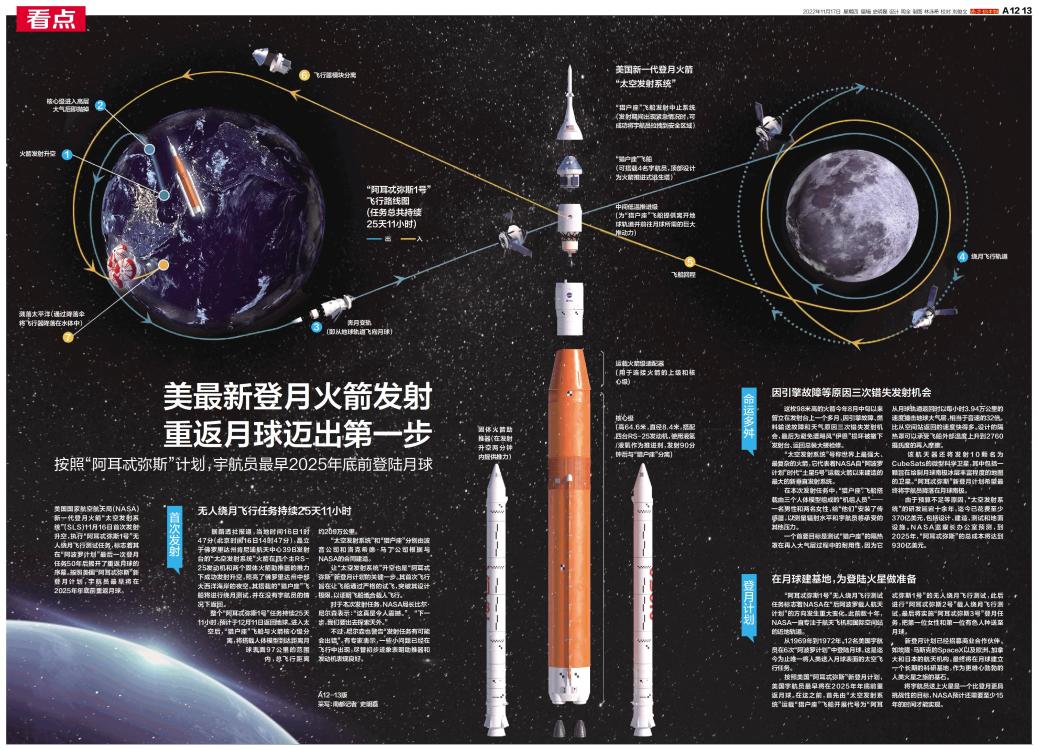 美国国家航空航天局(NASA)新一代登月火箭“太空发射系统”(SLS)11月16日首次发射升空。