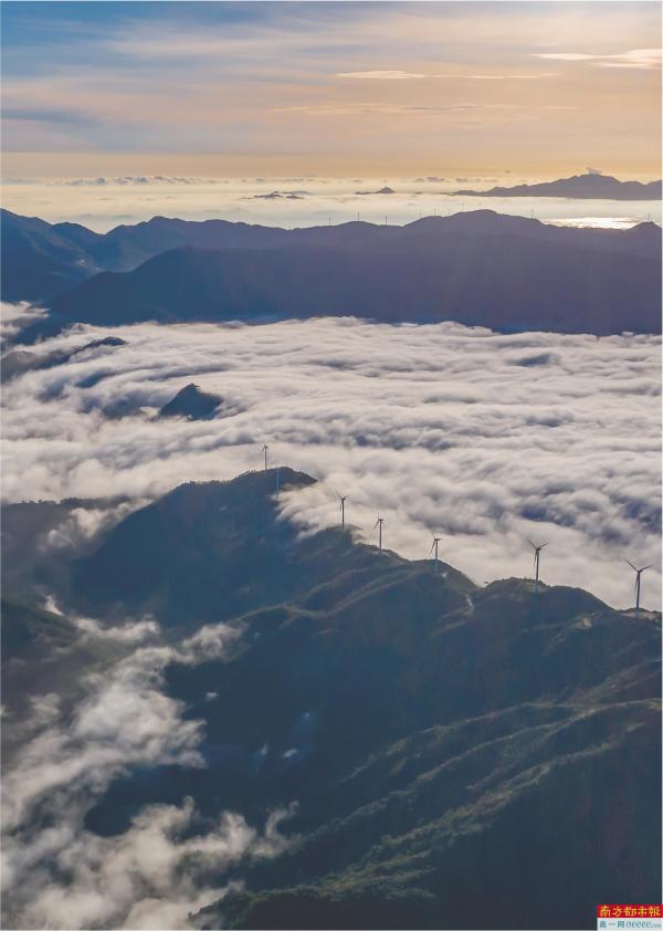 广东台山隆文,云漫风车山。 南都拍客 陆幸生 摄