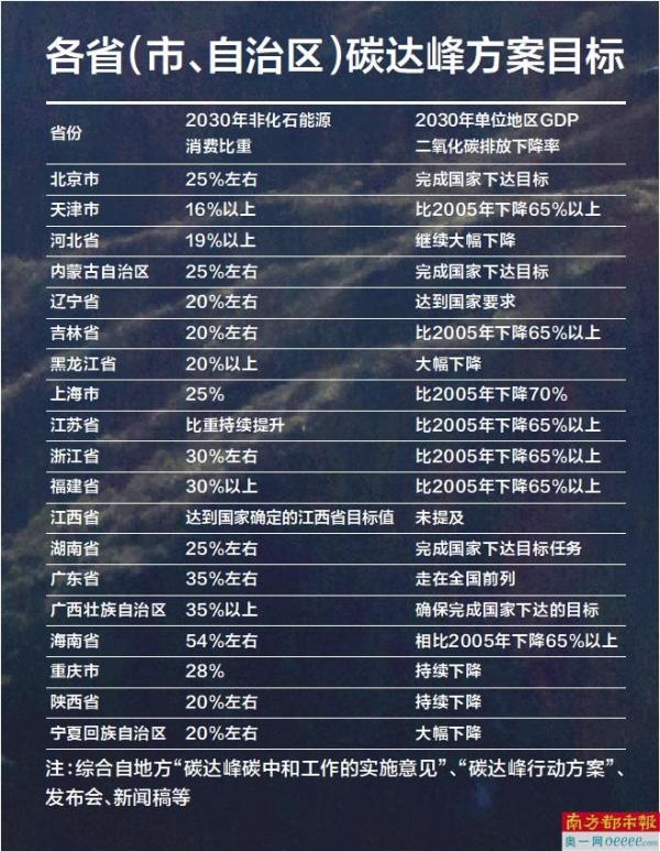 十余省份年内公布碳达峰方案
