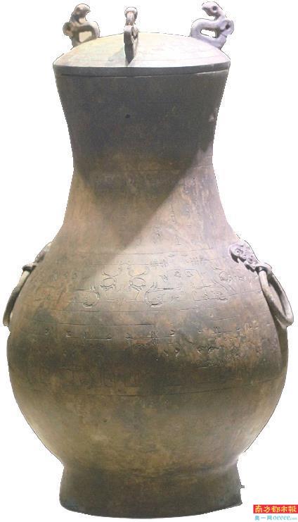 “国之大事,在祀与戎”。青铜器展厅展示了众多的古代兵器与礼器,内有五六十把青铜剑,古代战车的青铜配件,远程武器弩机,直径近一米的汉代铜鼓,还有鼎、簋、壶、爵杯、觚、盆、缶、甗、匜、尊、编钟、炉、镜等,器形完整,工艺精湛。