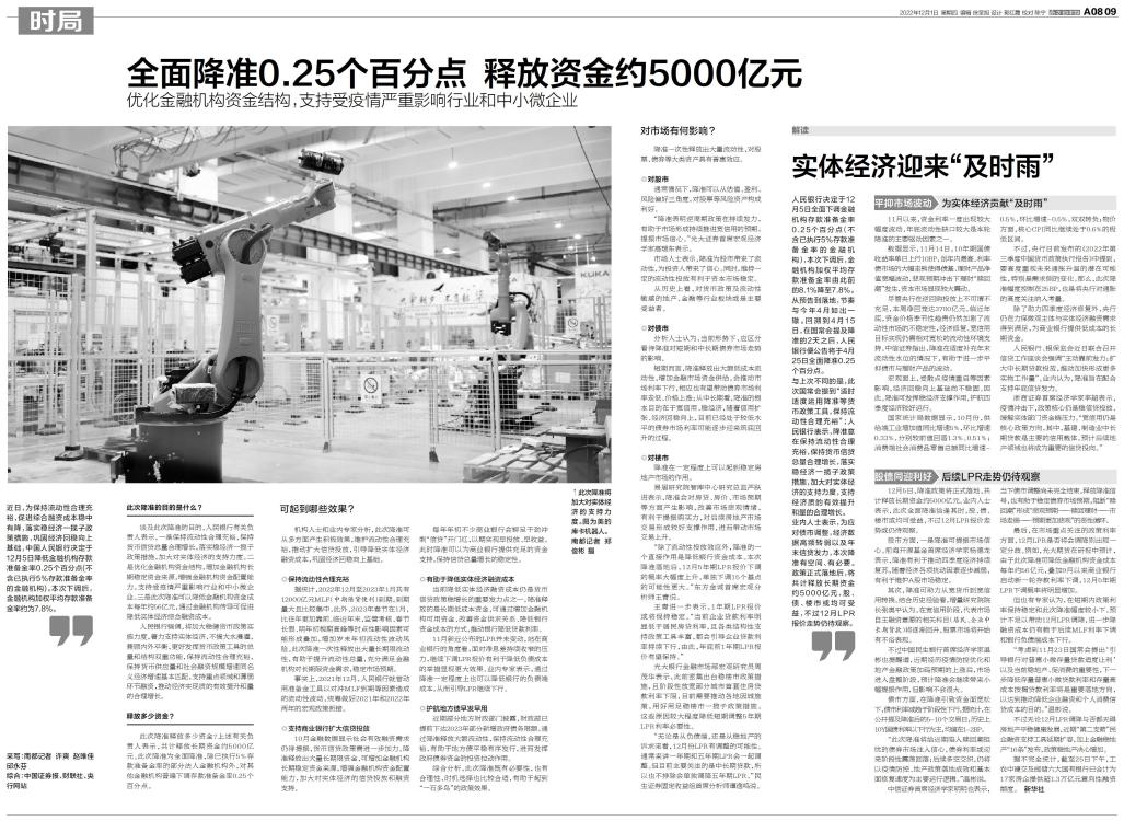 全面降准0.25个百分点 释放资金约5000亿元