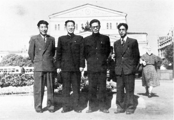 1955年至1956年,江泽民同志(右二)曾在莫斯科斯大林汽车制造厂实习。这是江泽民等在莫斯科合影。