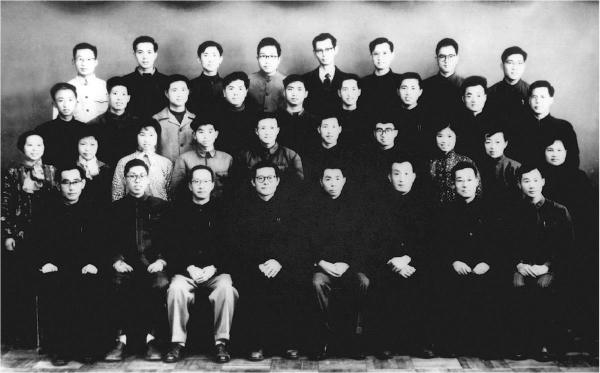 1963年3月,江泽民同志(前排右五)在上海同小型三相异步电机全国统一系列设计领导小组成员合影。