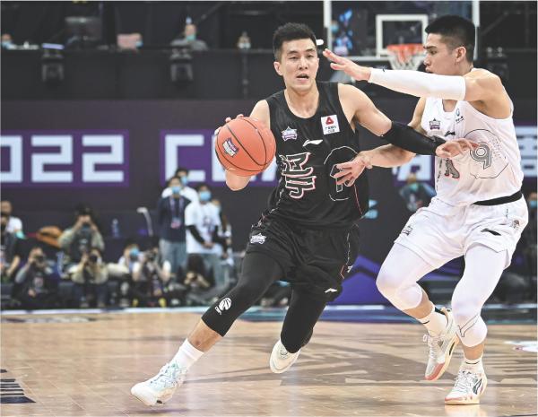 前天,在CBA全明星赛中,郭艾伦(左)突破陈盈骏的防守。常规赛第二阶段郭艾伦将解禁复出。 新华社发