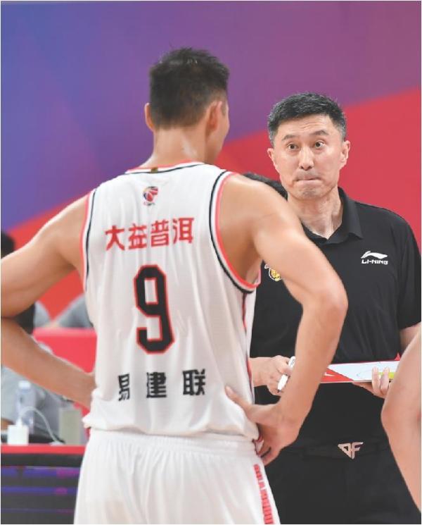 杜锋在第一阶段比赛中对易建联布置战术。 新华社发