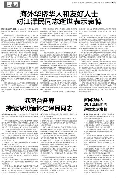 江泽民同志逝世后,海外华侨华人和友好人士连日来表示深切哀悼。