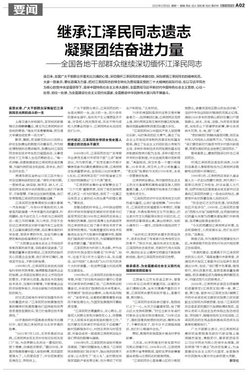连日来,全国广大干部群众怀着无比沉痛的心情,深切缅怀江泽民同志的卓越功勋,深刻感悟江泽民同志的精神风范。