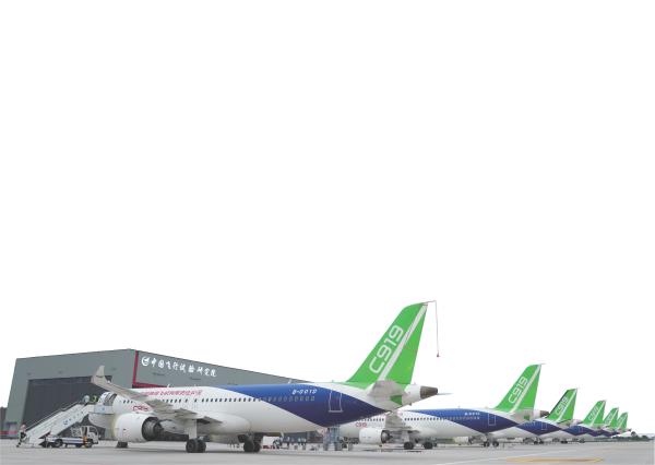 C919飞机是中国商飞公司研制生产的150座级国产大型客机,也是继中国商飞公司ARJ21-700飞机后第二款获得民航局生产许可证的国产喷气式客机,其总装生产设施位于上海浦东祝桥。后续,首架C919飞机将交付中国东方航空集团有限公司,更多的国产大型客机将投入航线运营。