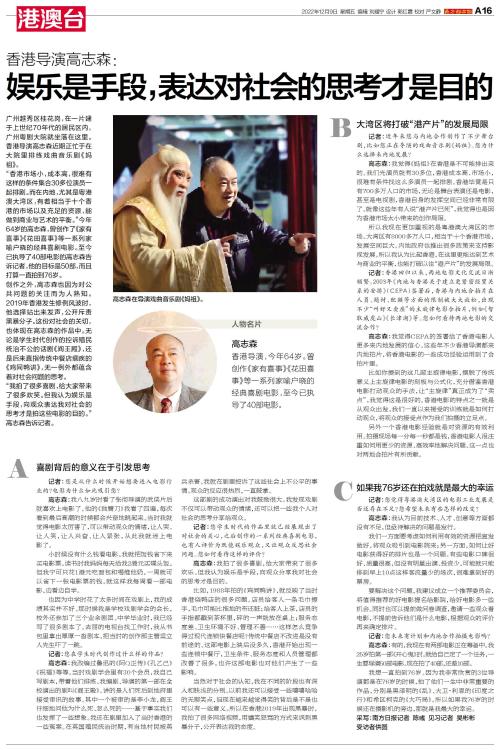 高志森:我拍了很多喜剧,给大家带来了很多欢乐。但我认为娱乐是手段,向观众分享我对社会的思考才是目的。