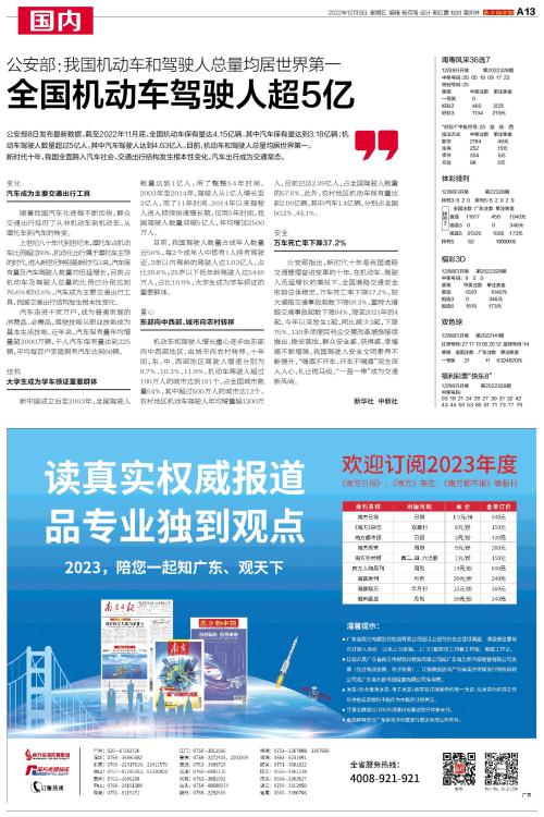公安部8日发布最新数据,截至2022年11月底,全国机动车保有量达4.15亿辆,其中汽车保有量达到3.18亿辆;机动车驾驶人数量超过5亿人,其中汽车驾驶人达到4.63亿人。
