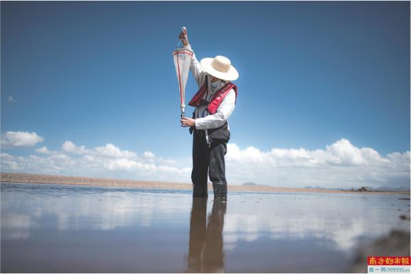 7月25日,长江科学院科考队员李鲁丹在采集浮游生物样本。此前一天,2022年江源综合科学考察在青海省玉树藏族自治州启动。