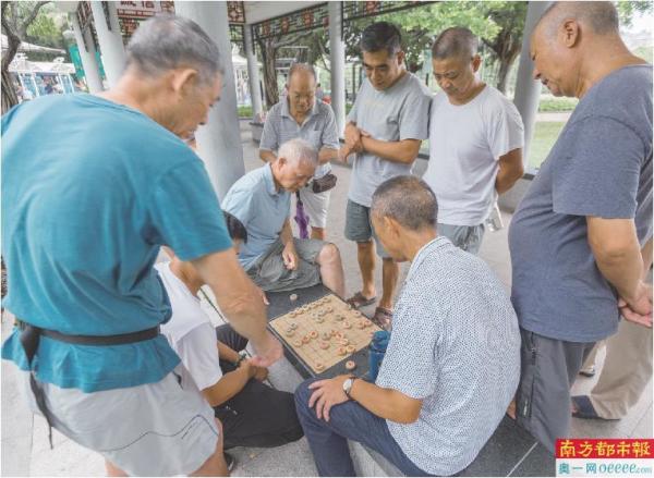 深圳龙岗龙潭公园,大爷们在下象棋。南都拍客 何彬 摄
