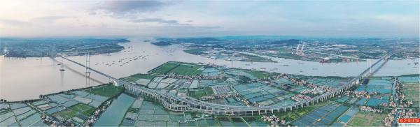 南沙大桥全景(6月29日摄,无人机全景照片)。 新华社发