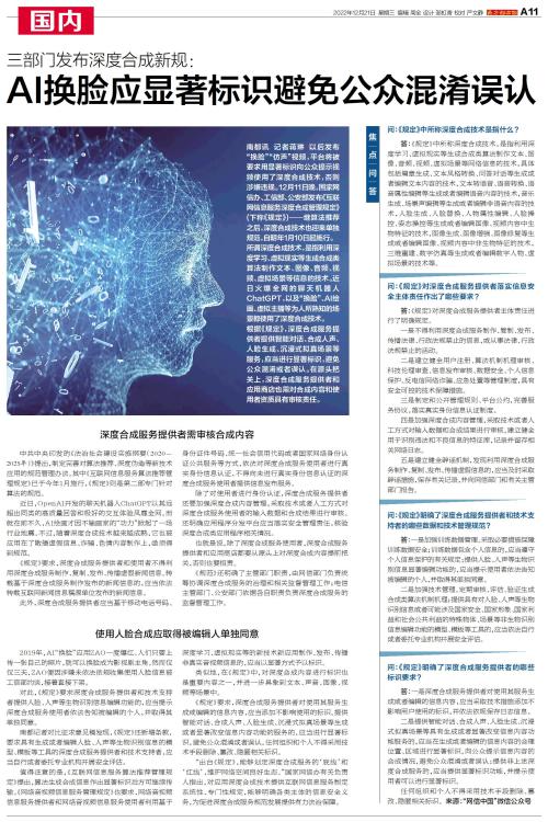 以后发布“换脸”“仿声”视频,平台将被要求用显著标识向公众提示视频使用了深度合成技术,否则涉嫌违规。